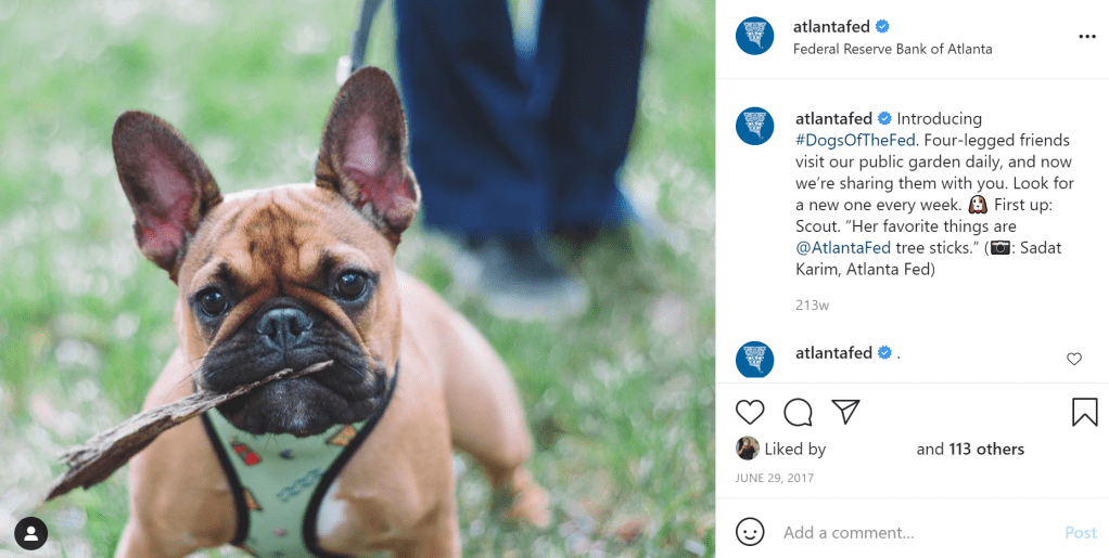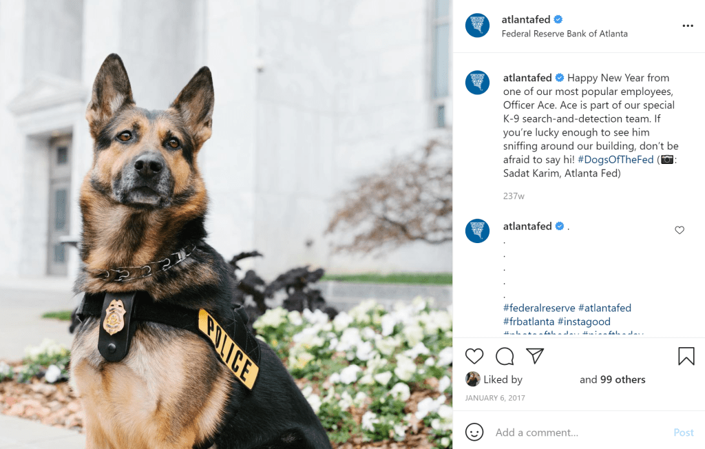 I often get asked how on Earth dogs fit into the Instagram strategy of the Central Bank of the United States? Well, here’s how #DogsOfTheFed came to be and why.